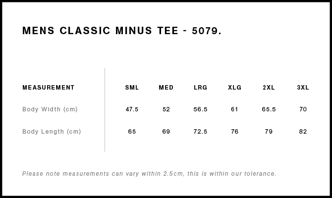 Shorter body roughly 5cm shorter than our standard Classic Tee. Neck ribbing, side seamed, shoulder to shoulder tape, double needle hems, preshrunk to minimise shrinkage